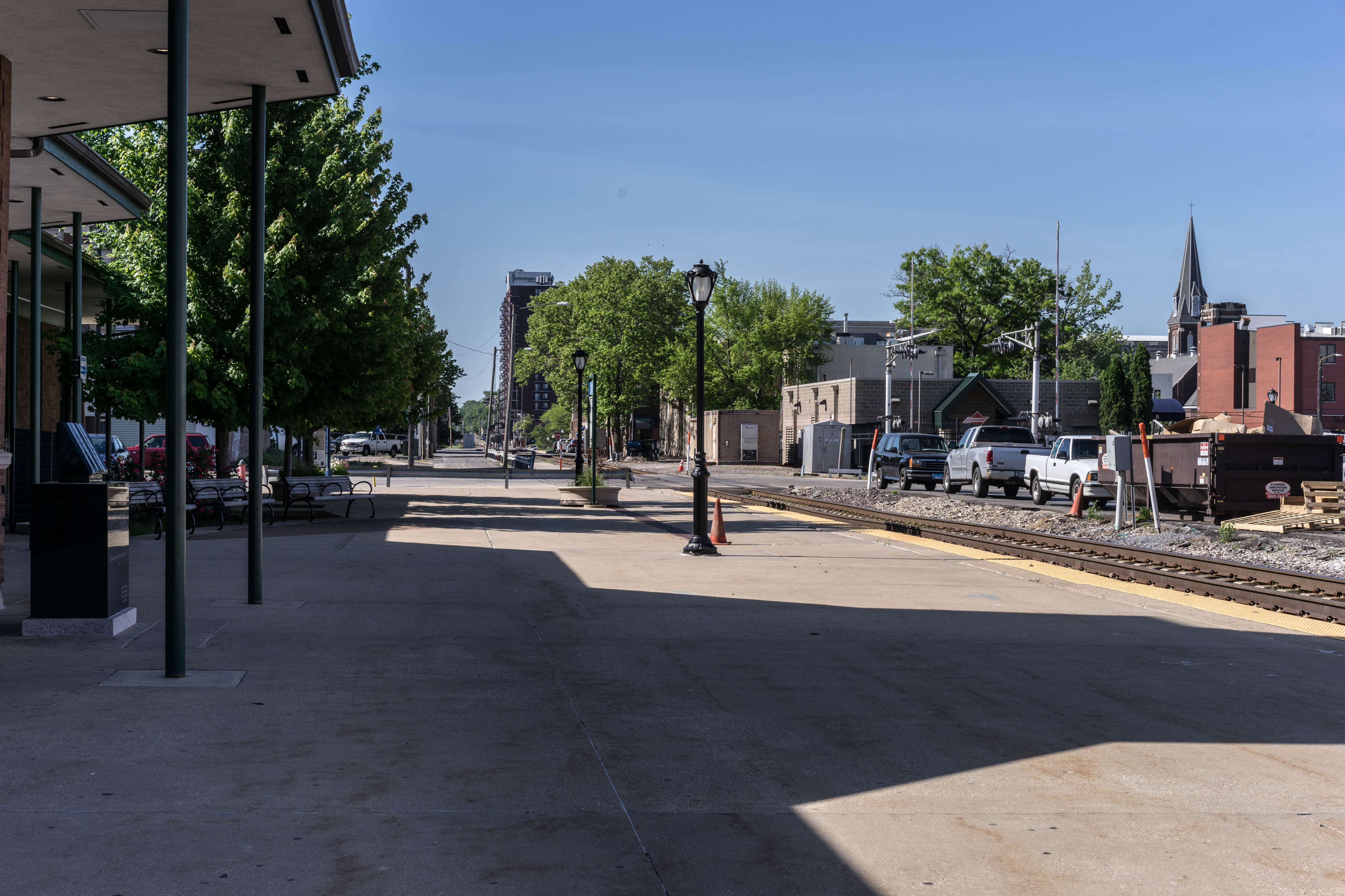 It was a warm and sunny morning, and I was to take the 9:55 am train back to Chicago. I arrived early at the station and sat down on a bench in the shade, looking at the one and only track and observing the few people who were moving about. At 9:55 there was no train in sight, but I waited patiently (unusual behaviour on my part). However, half an hour later I did start to become a bit impatient, so I went inside and asked the man at the counter if he had any news about the 9:55 train. “Yes, ma’am, it’s expected around noon“.