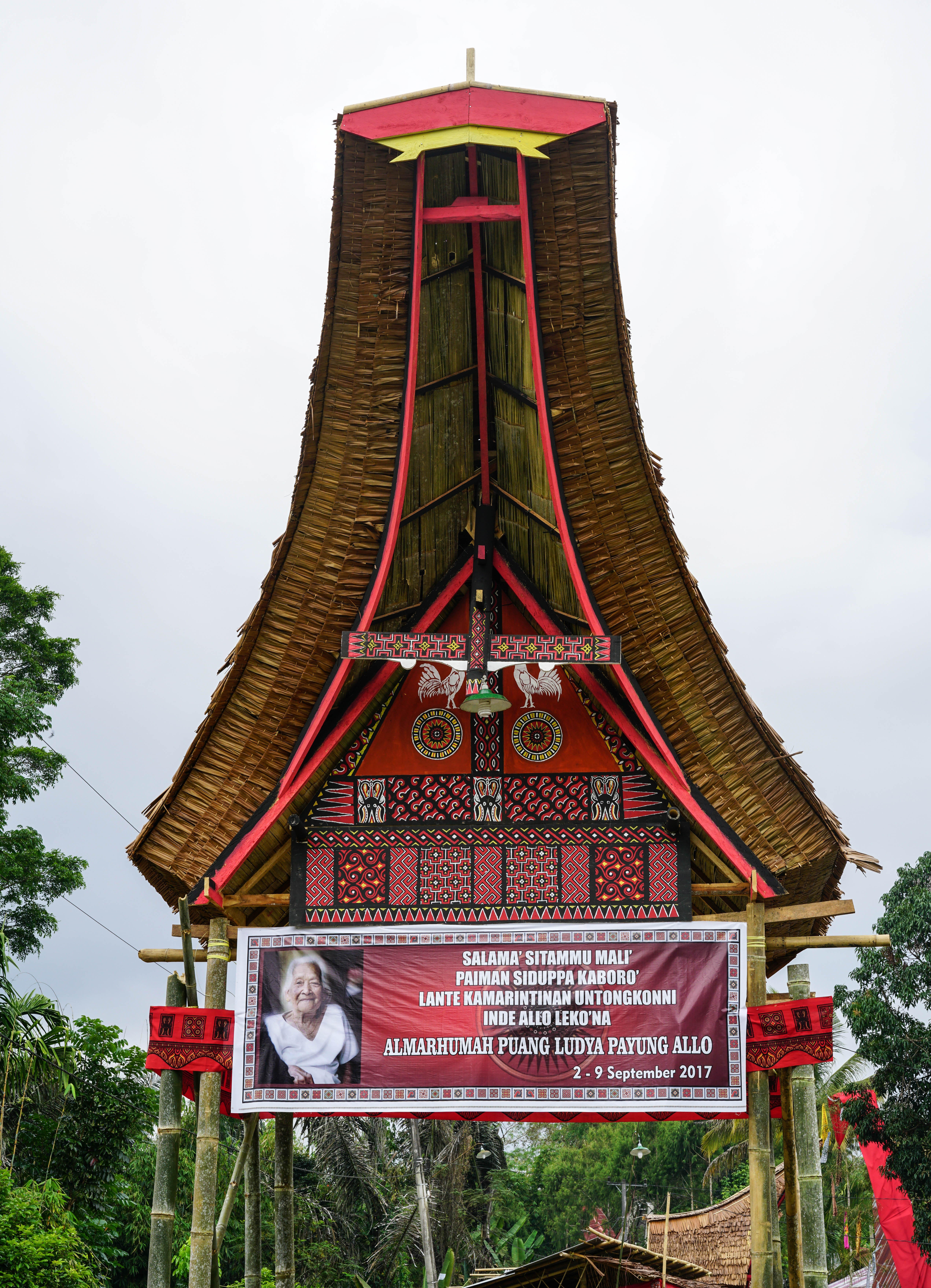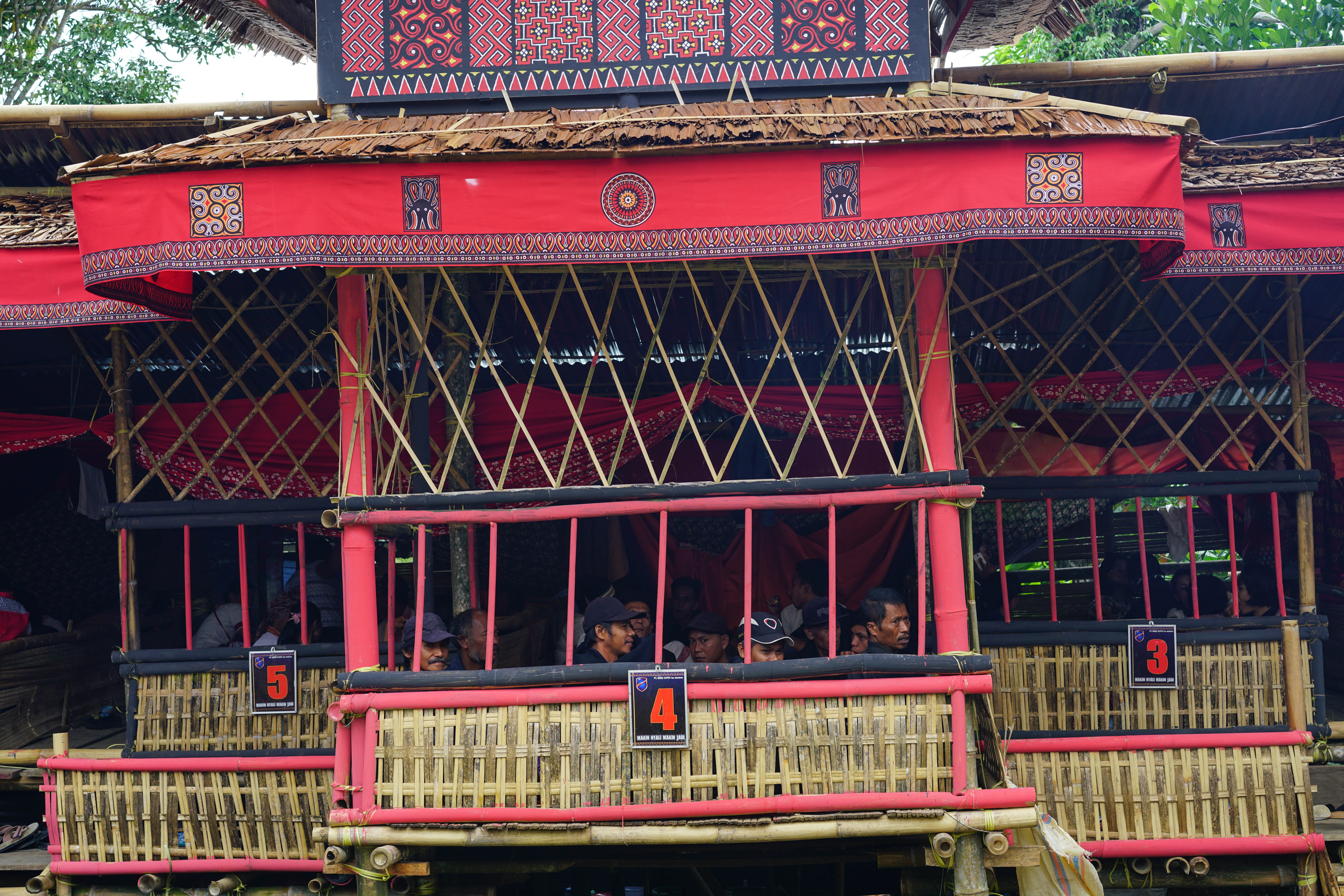 This was a very important ceremony, lasting one full week, where no costs had been spared, the deceased being a lady who had been something like the head of her village. Bamboo podiums, the construction of which takes a couple of months, had been put up for the very numerous friends and relatives. They had to be numbered so that people knew where to go.
