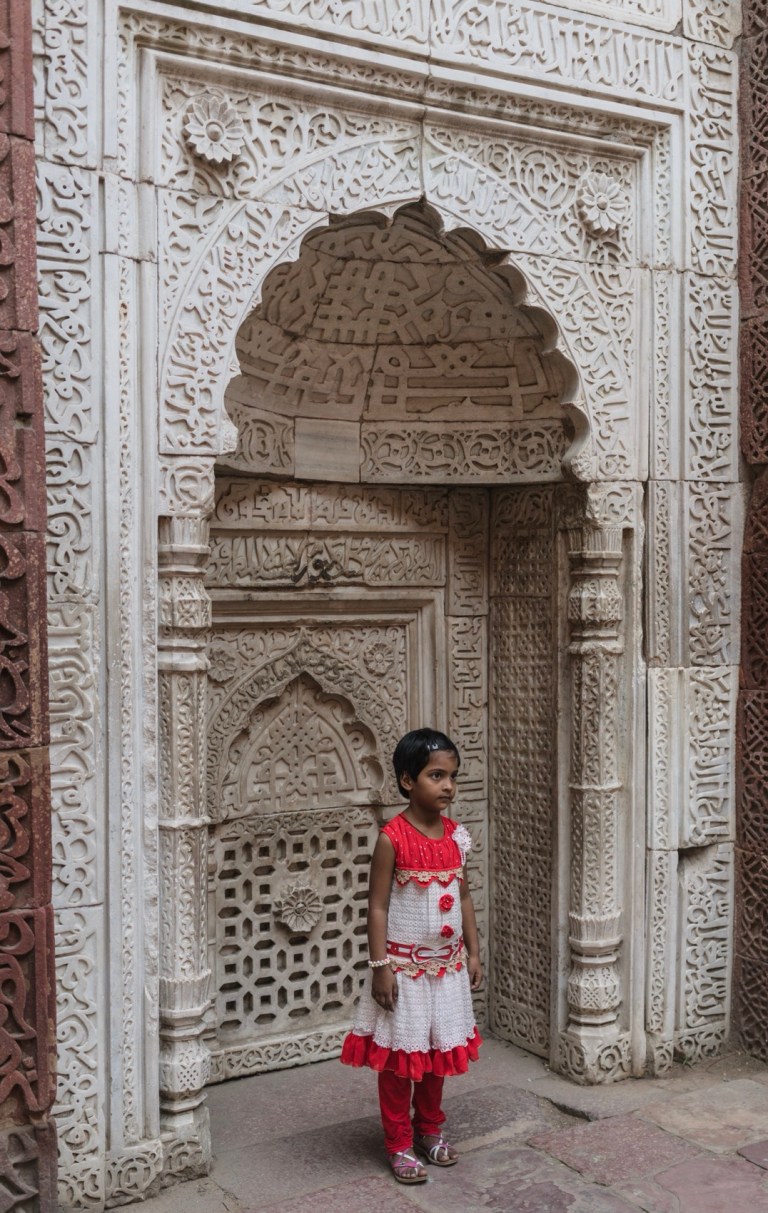 As I was strolling around, I came across this serious little girl, posing in her best outfit: