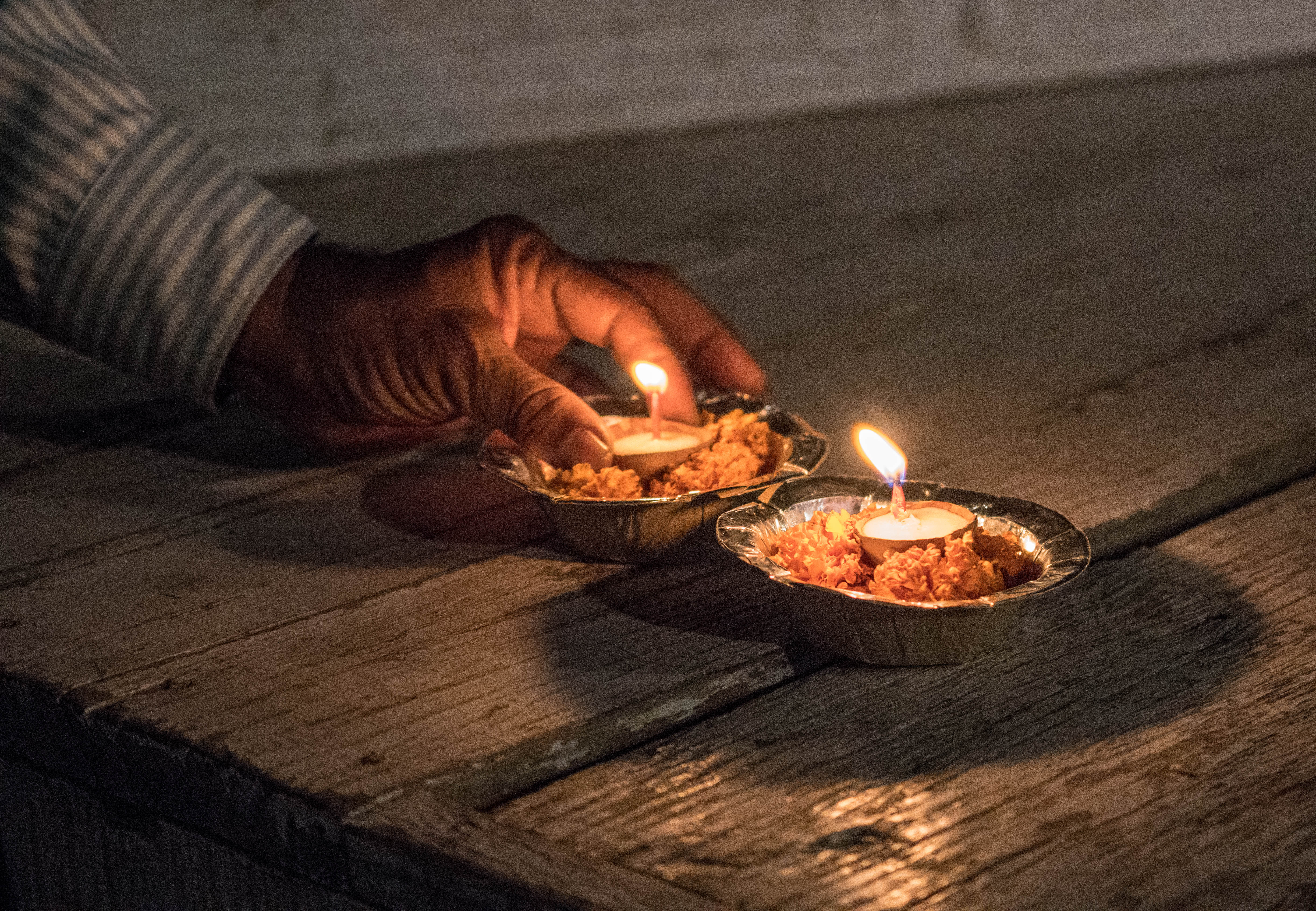 As dusk fell I was again out in a small boat. The main purpose was to see the suggestive Aarti light ceremony that takes place every evening in Varanasi. At the end people put offerings in the river, a candle on a little tray with marigolds all around. I wanted to do the same, but clumsily failed at my first attempt – the tray immediately took in water and sank. The problem was that I had dropped it in instead of gently putting it down, my guide explained. You had to lean quite far out to reach the water, and I was sillily a little afraid of falling in myself. (How can you be afraid of falling into a holy river, a river people travel thousands of miles to get into?) The second time I was more successful and could see my candle float down the Ganges. It may seem like nothing, but it was a great moment.