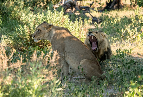 The previous days of our safari in the Okavango delta in Botswana we had seen two lionesses, each with three cubs, the most charming little creatures one could possibly imagine (see earlier blog posts). But there were three lionesses in the pride, and now we were in front of this third lady. She was in the company of a male, so we expected some action.