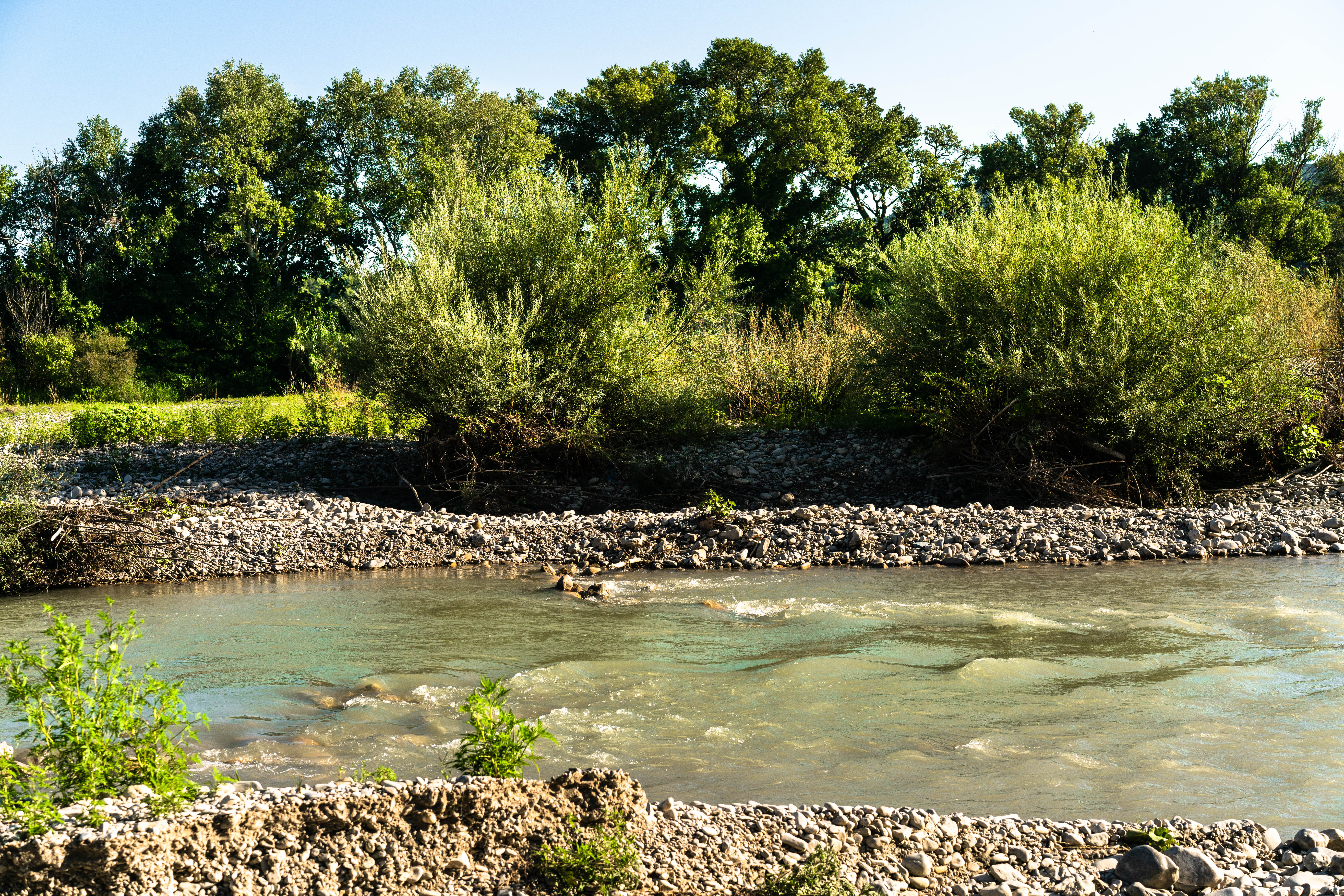 If you would like to immerse yourself in the river after the strenuous (no, only joking, it is rather the opposite of strenuous) vineyard immersion, I’m sorry to disappoint you: at least around St Maurice it is not allowed, nor is it particularly inviting with all the shrubs and thorny branches you would have to pass through: