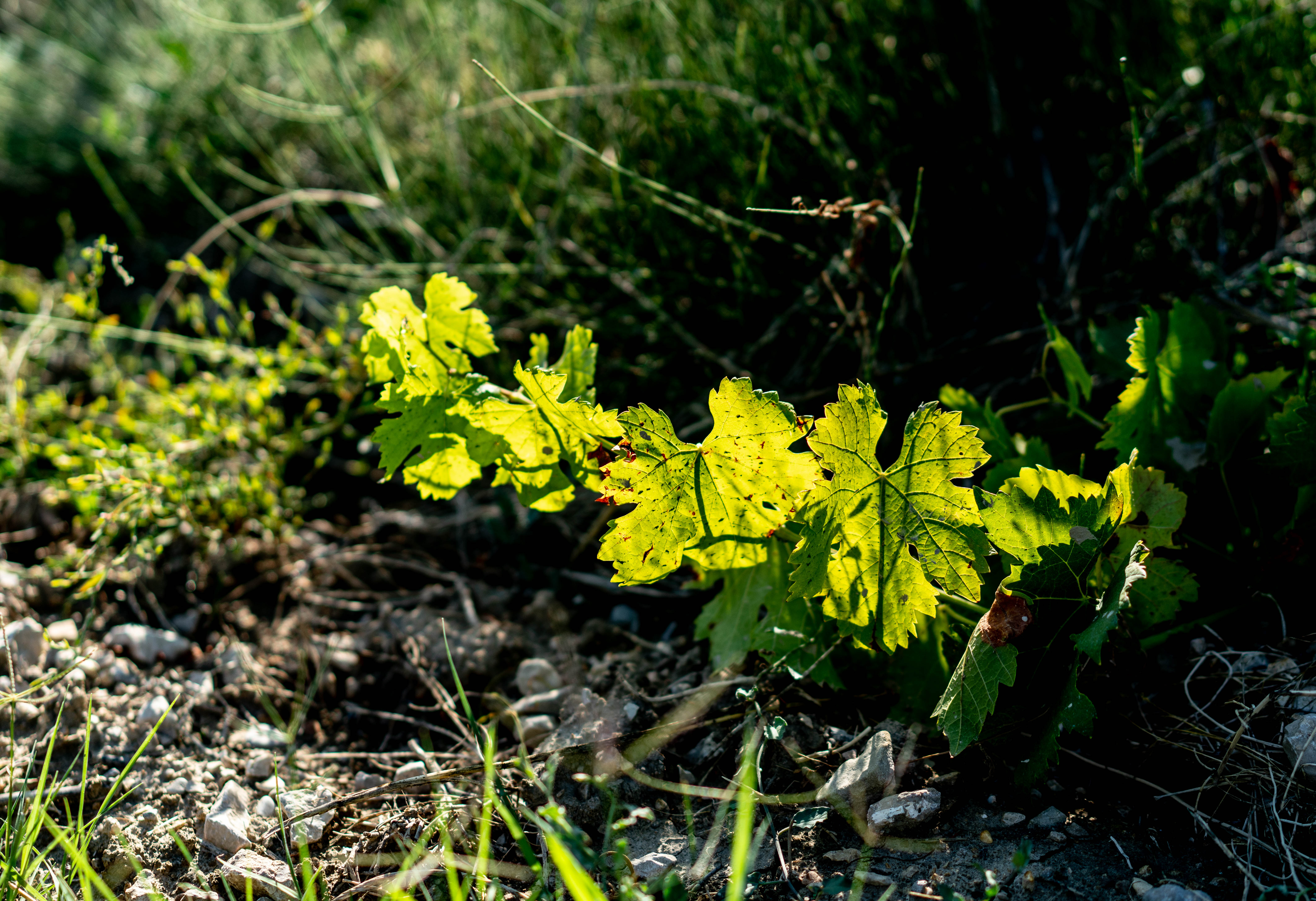 I actually did look the way indicated by the grass, and discovered some photogenic leaves: