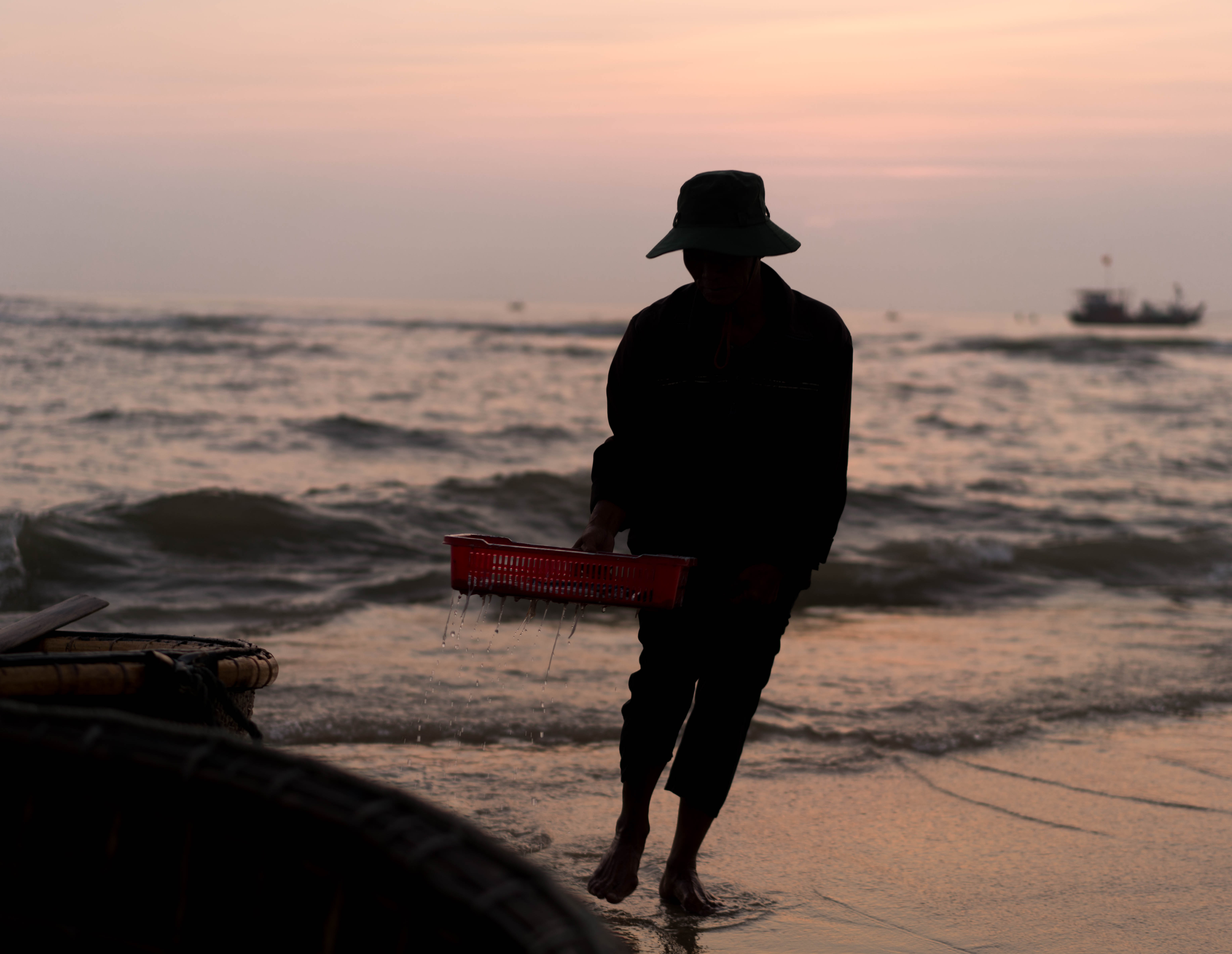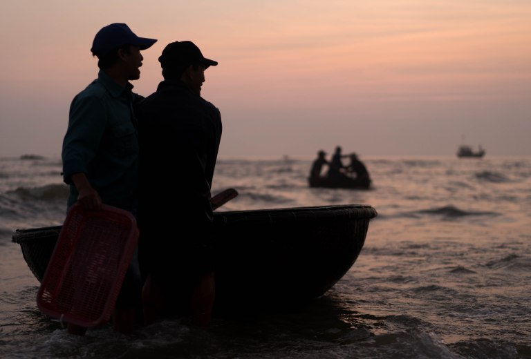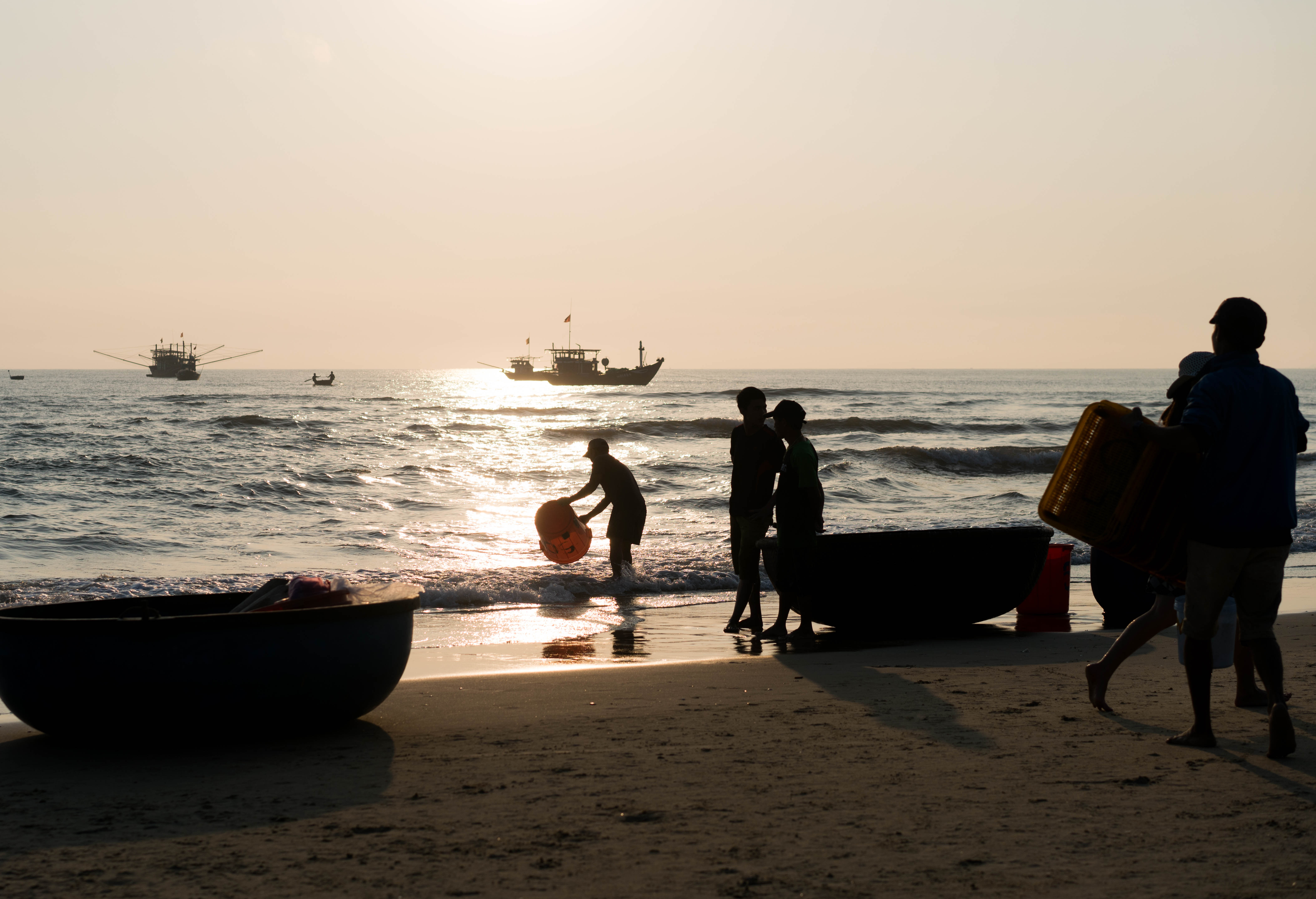 The sun was just rising and it was the busiest beach I ever saw. I was about an hour’s drive south of Hoi An in Vietnam on an excursion with the photographer Etienne Bossot.