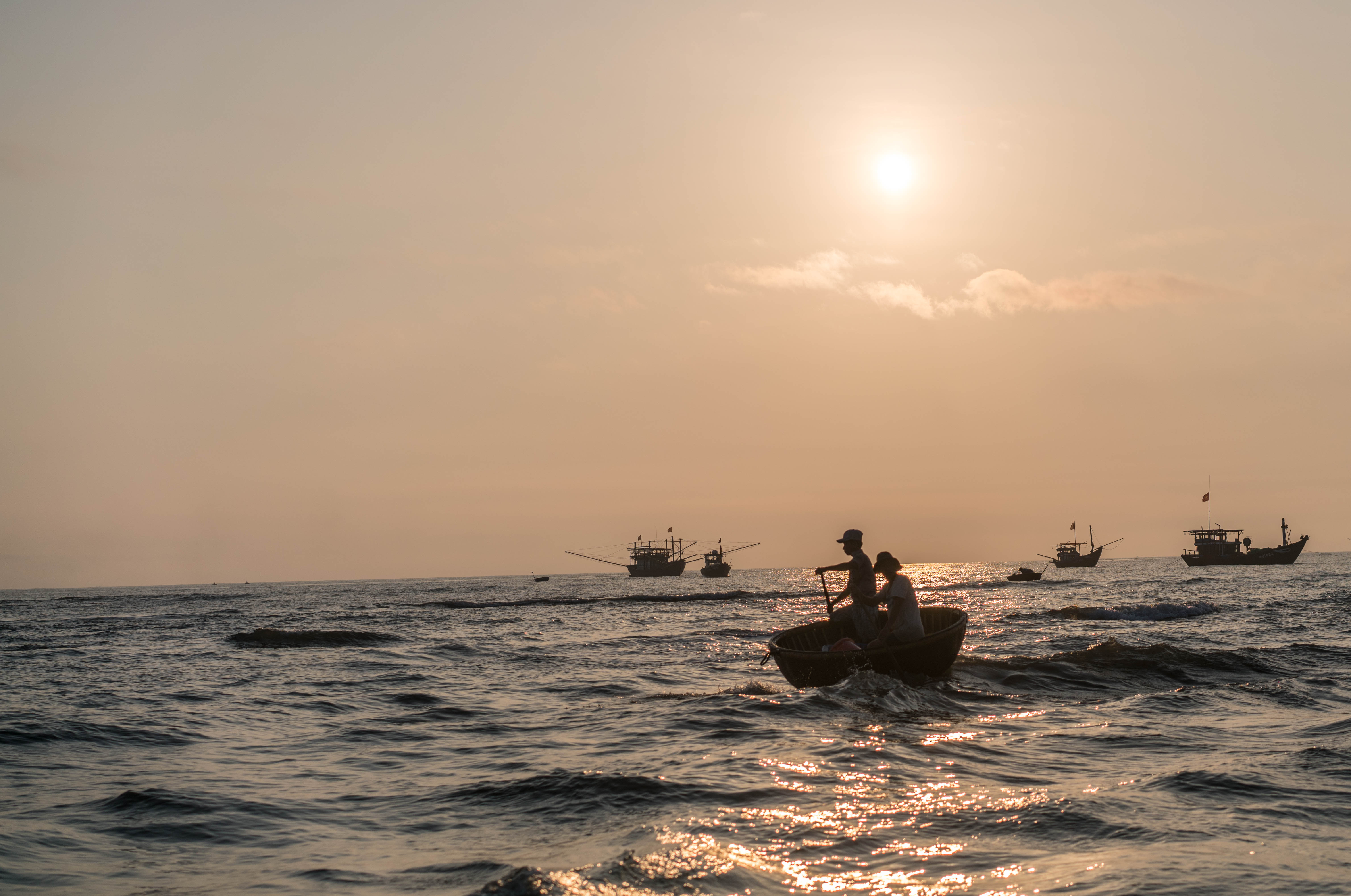 The activity was all about fishermen and their catch. Their boats were lying on the roadstead and the men used basket-shaped tiny boats to bring their catch ashore, where deals were swiftly made with the numerous buyers around. What seemed chaotic was in fact very well structured, rehearsed on thousands and thousands of similar mornings.