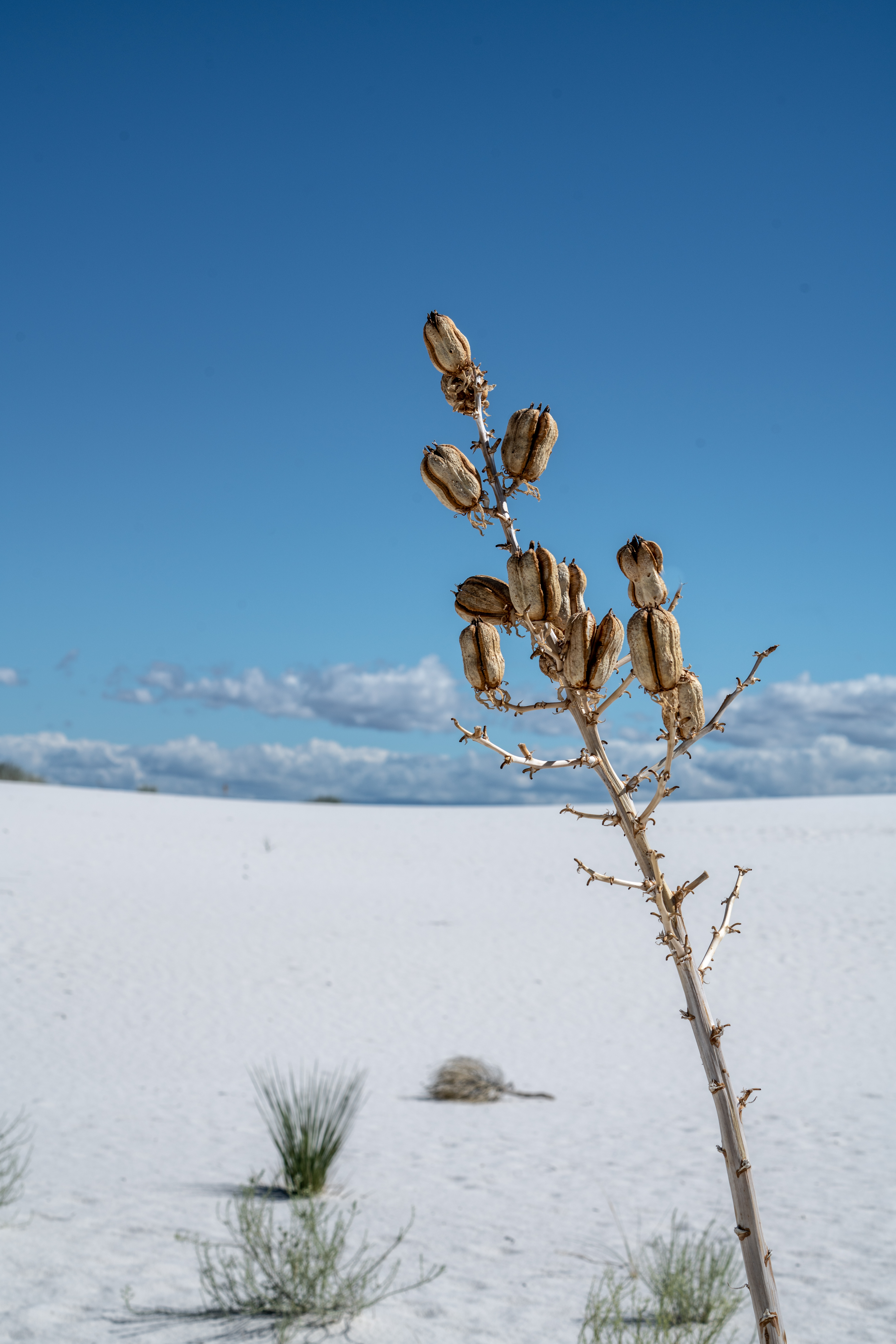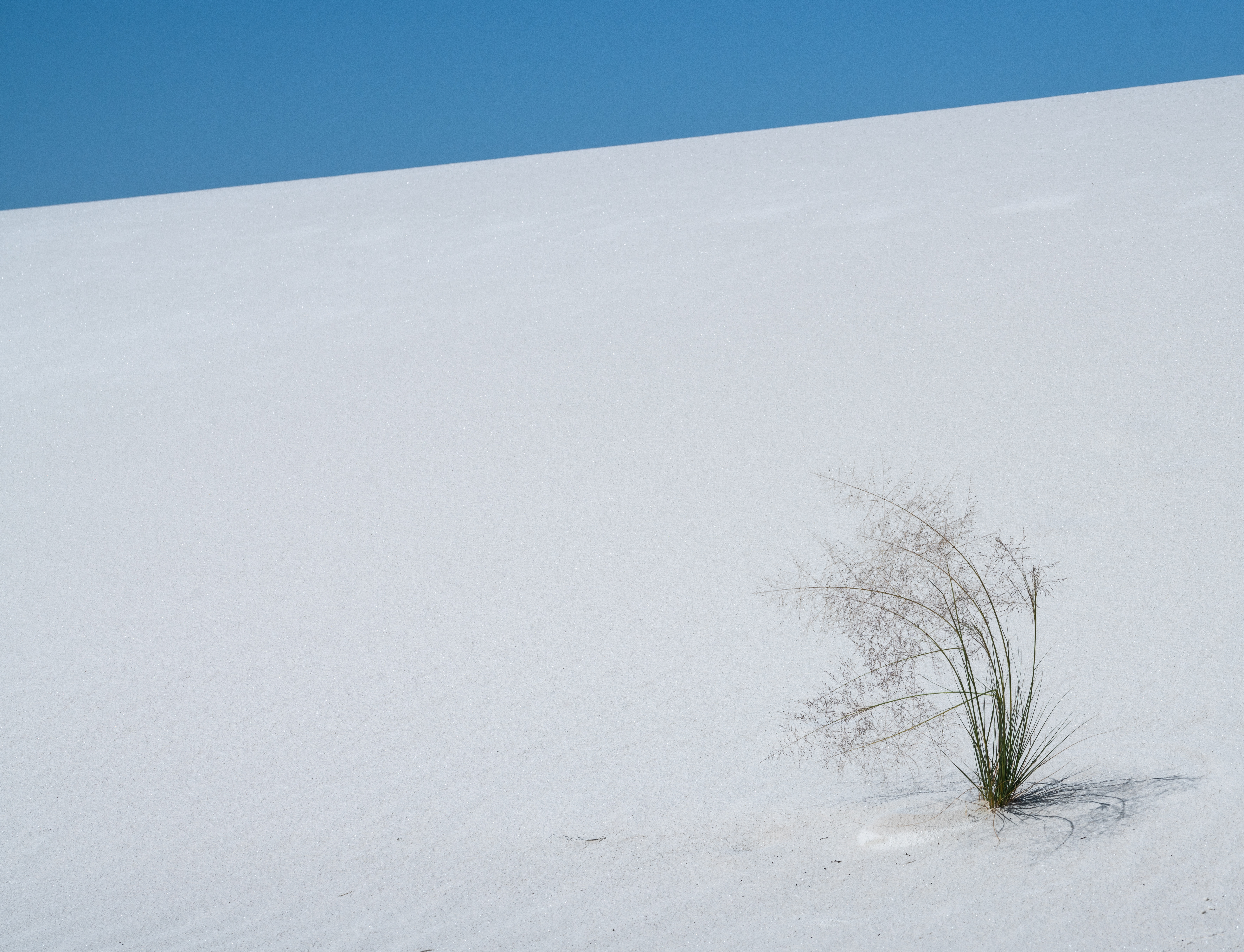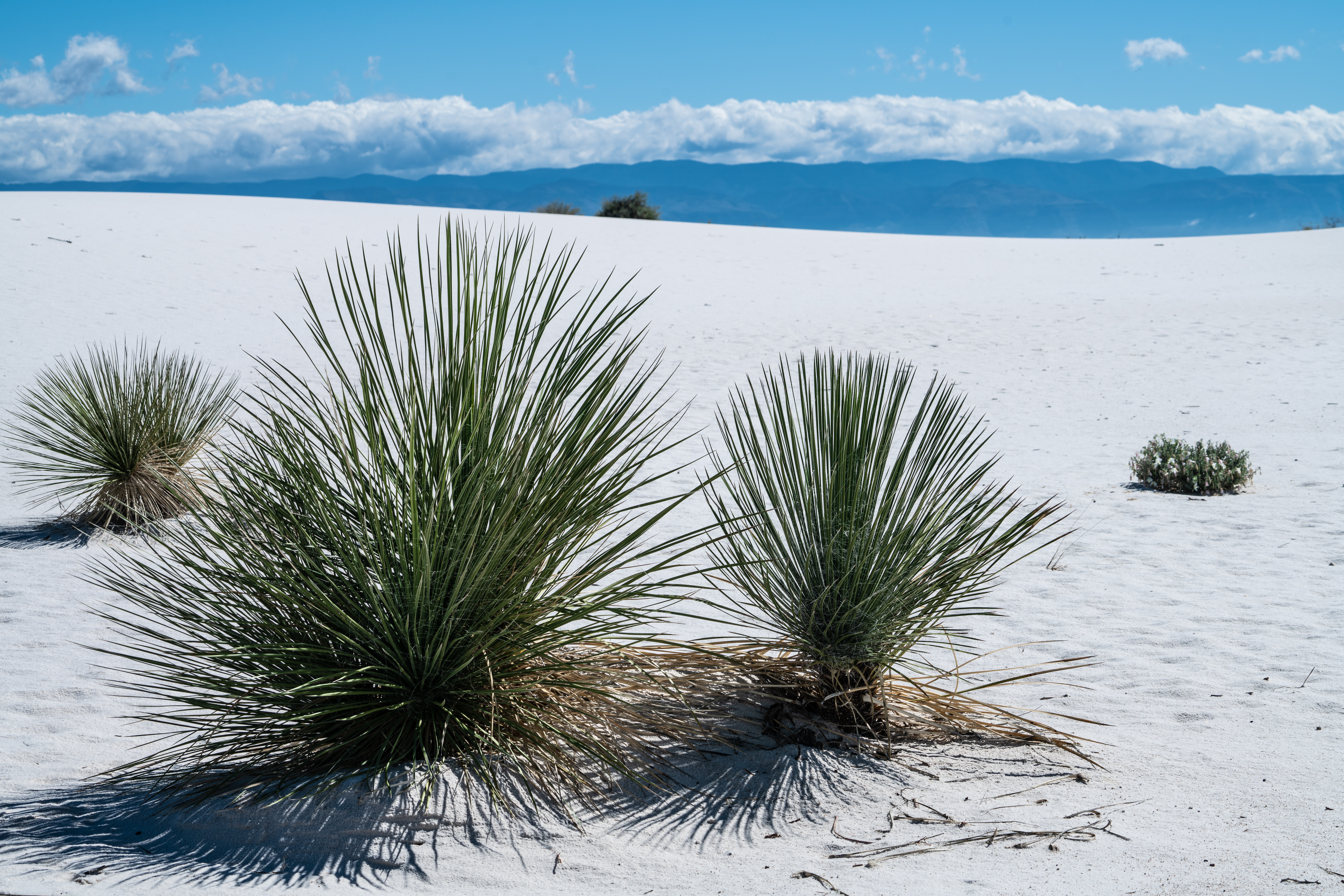 But it wasn’t snow, it was gypsum and I was in the biggest gypsum desert there is, the White Sands National Monument in New Mexico, USA. Since gypsum isn’t known to melt in the sun, the water on the road had come from above: there had been some rather heavy rain showers on the previous day.