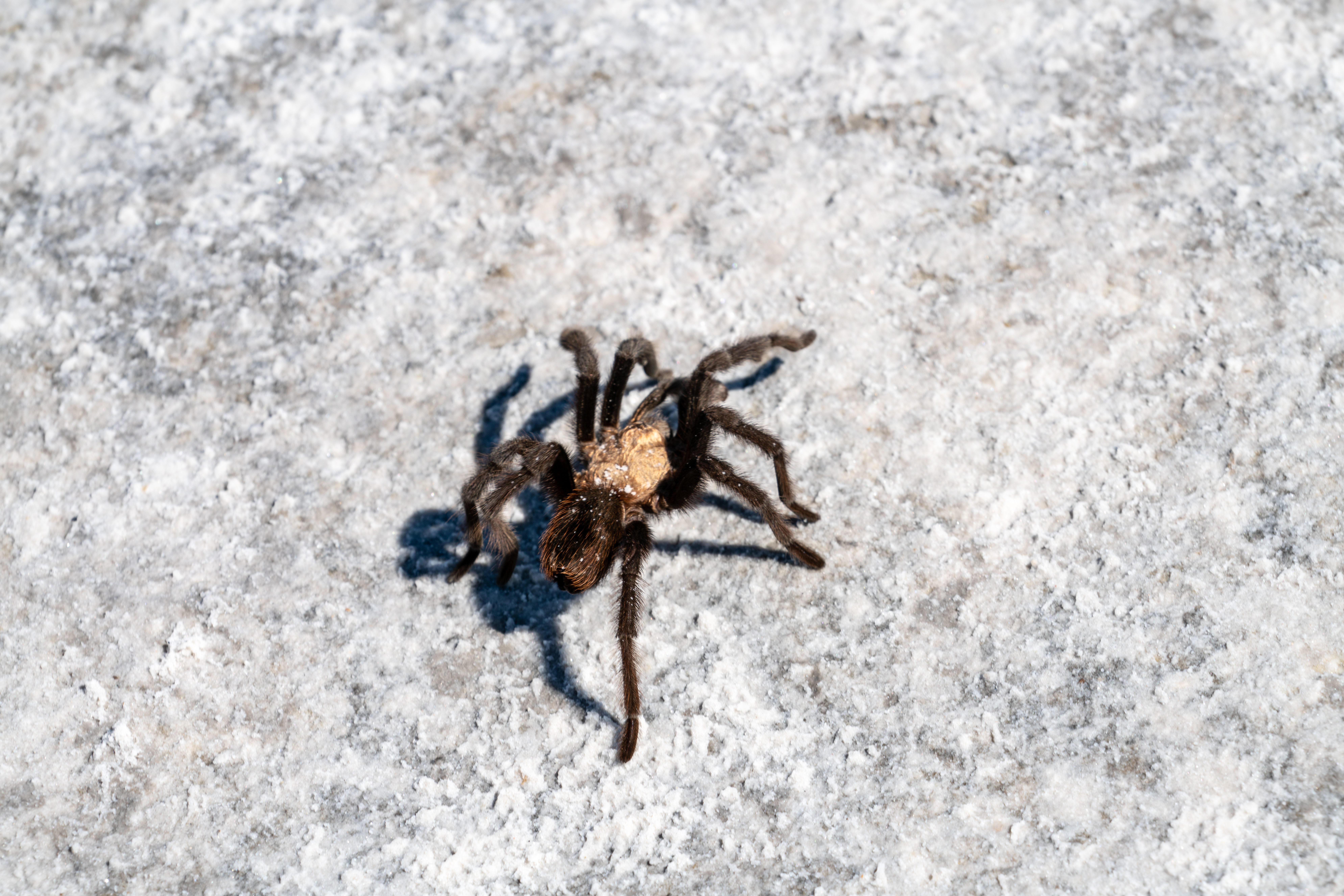 Was it a tarantula? I got quite excited and managed to drop my camera lens cap, you know one of these black things. Funnily enough it was nowhere to be found. How on earth is it possible to lose something not so small and very black in a white landscape??