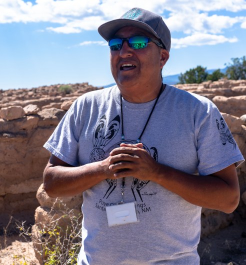 The Puye Cliff complex, not far from Santa Fe, New Mexico, is situated on Santa Clara Pueblo land and comprises cliff dwellings and, on the mesa top, the ruins of a big village.