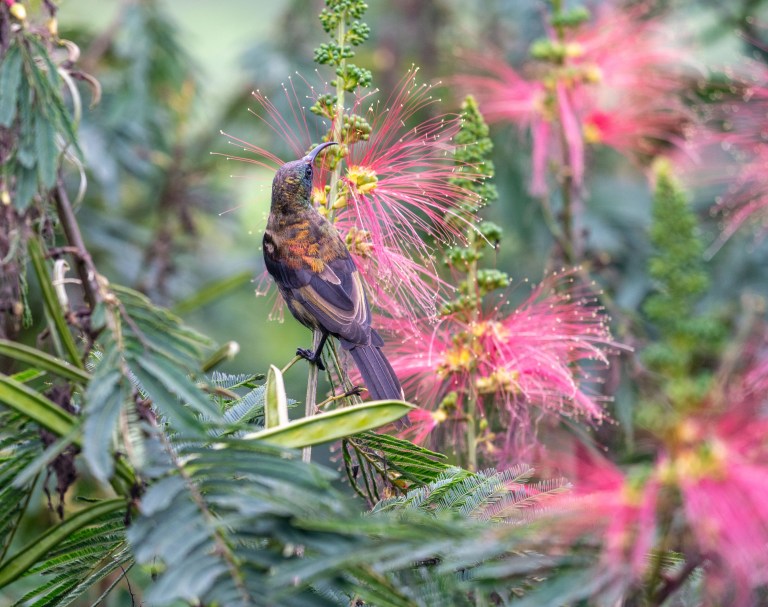 After my first gorilla tracking (see blog post The unexpected time keeper) I sat down on my very pleasant veranda in Mahogany Springs Lodge. Of course I had noticed the beautiful flowers just in front of my room, but now I saw that these flowers attracted lots of birds. I could just sit comfortably outside my room, enjoy the show and take photos. That’s what I call birding!