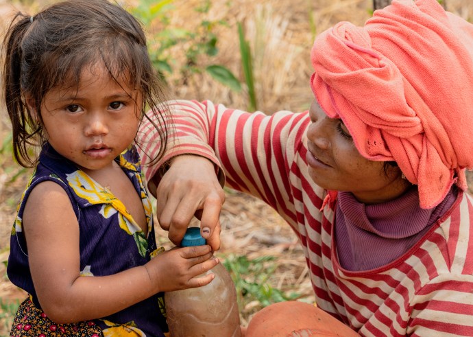 She stopped her hard work of digging up old rice plants from the dry and dusty paddy and greeted us warmly. I handed her a toothbrush and some toothpaste that I had brought, and she looked at me, a little worried: “But I don’t have anything to give to you“.