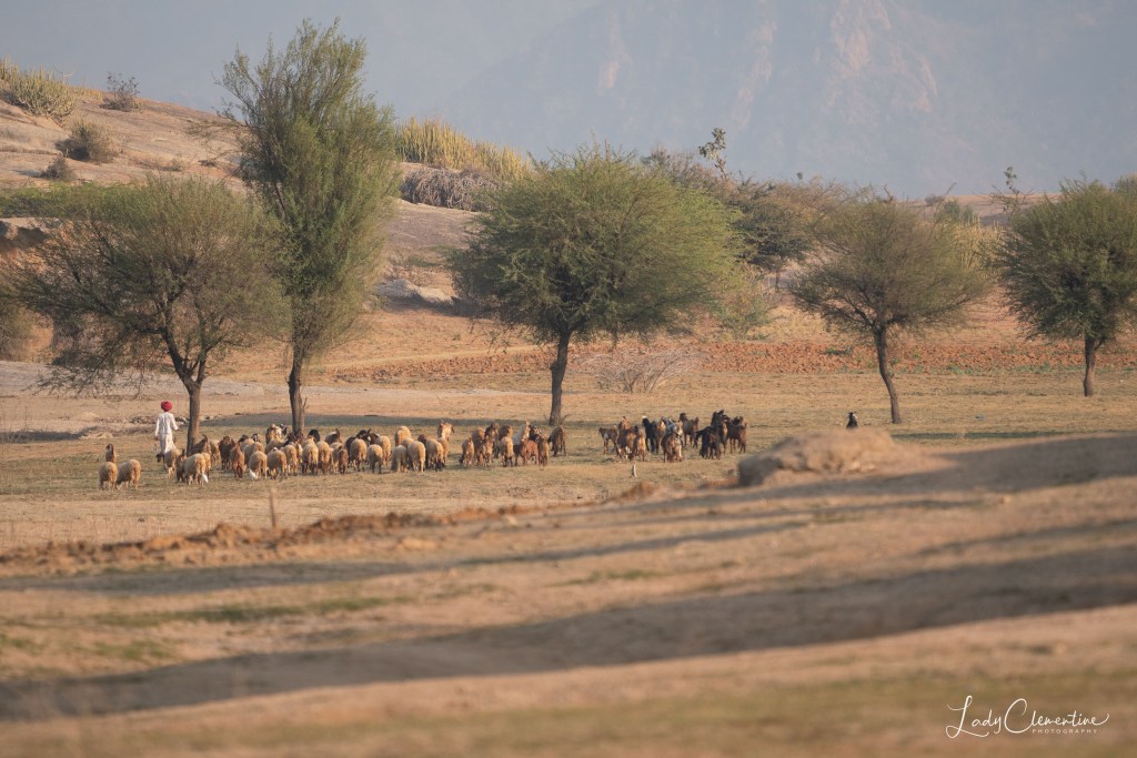 When I took the photo below, we had just spotted a leopard a couple of hundred meters away when we came across this big herd of potential leopard dinner, but neither the sheep nor the herdsman showed any sign of being on the alert.