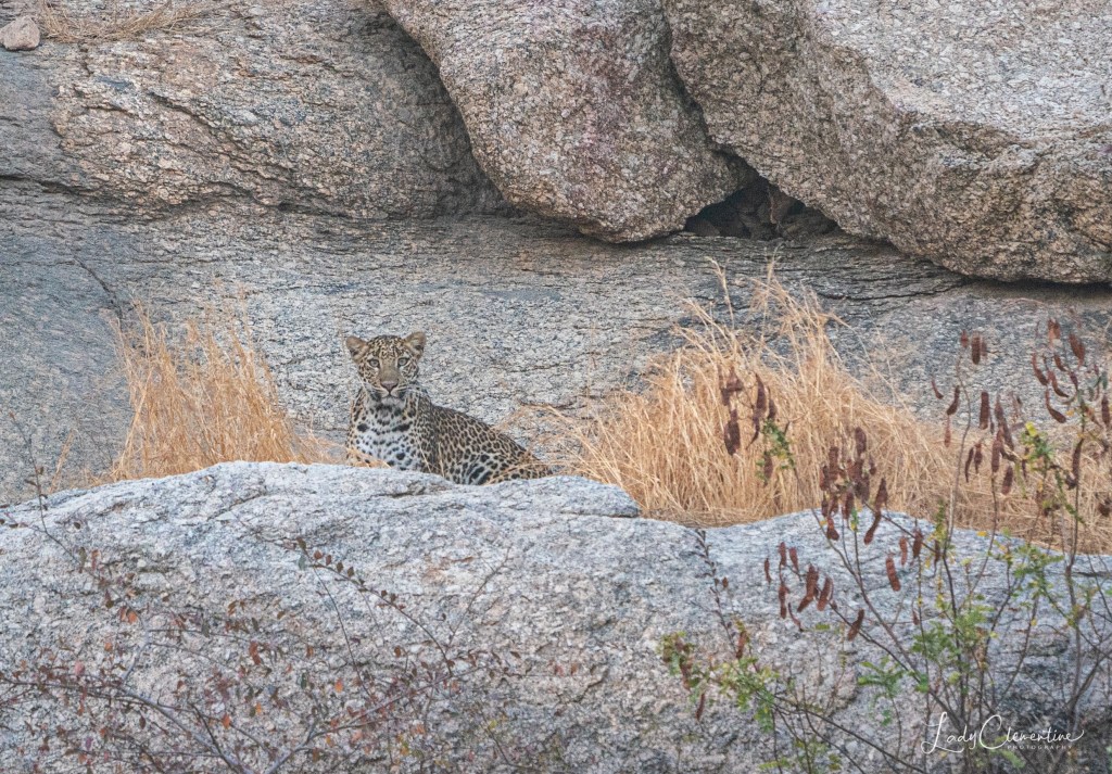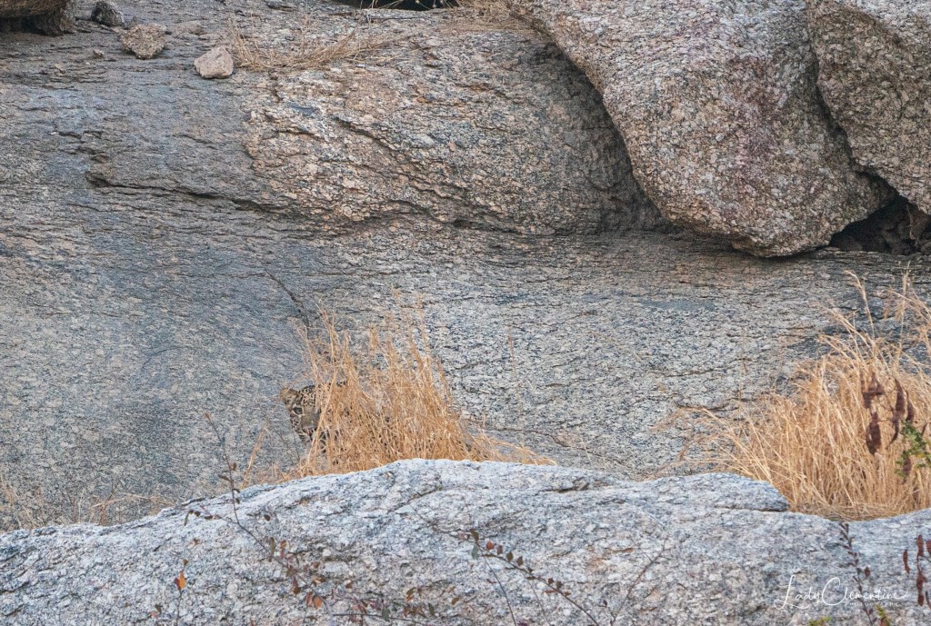 The next day we saw leopards again, and in the morning the day after that too. But how well camouflaged they are. And so elusive. They look in your direction for a brief moment, then decide to go into hiding or simply get on with their business. We never got as close to them as we had with Fenella – all photos below were taken with my 400 mm lens.