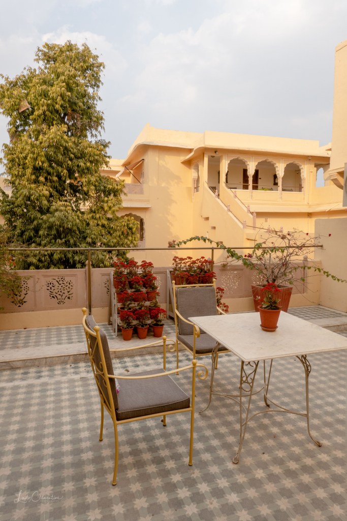 We were staying in Samode Haveli, a lovely heritage hotel right in the city center. I was a bit tired after the drive from Delhi, so I decided to spend the end of the afternoon relaxing outside our room in a peaceful and beautiful private sitting area.