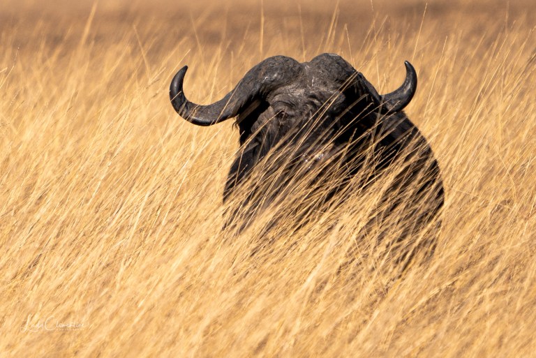 Where were all the animals?? It was a very calm morning, quite chilly, in the Busanga Plains in the Kafue National Park, Zambia. We saw some birds, passed the odd grazing antelope, but the usual numbers just weren’t there. In the distance there was a lone buffalo (actually the first we had seen up in Busanga), but wait! There is something strange, the buffalo is sort of dancing and … there is something on it, something yellowish – a lion!!!